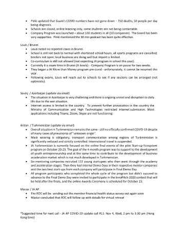 *Suggested time for next call - JA AP COVID-19 update call #11: Nov 4, Wed, 2 pm to 3:30 pm (Hong