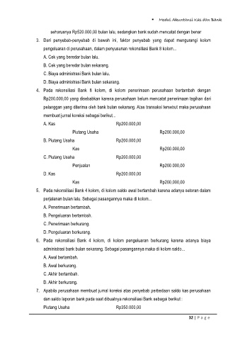 7. Apabila perusahaan membuat jurnal koreksi atas penyebab perbedaan saldo kas perusahaan