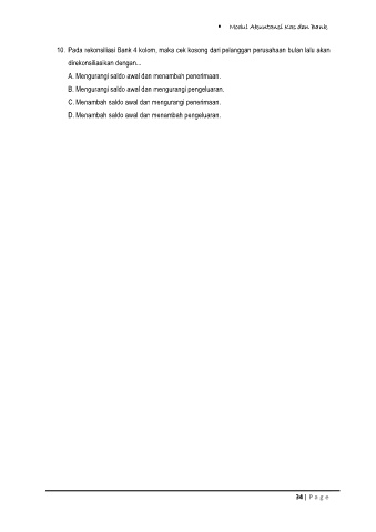 10. Pada rekonsiliasi Bank 4 kolom, maka cek kosong dari pelanggan perusahaan bulan lalu akan