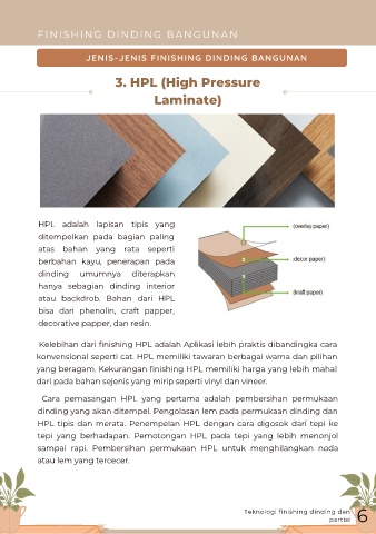 yang beragam. Kekurangan finishing HPL memiliki harga yang lebih mahal