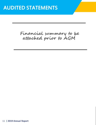 AUDITED STATEMENTS Financial summary to be attached prior to AGM 11 2019 Annual Report