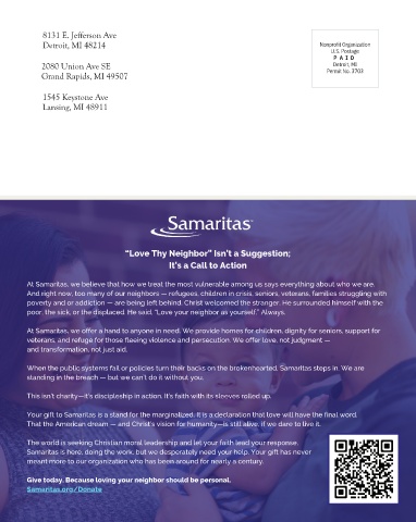 Your gift to Samaritas is a stand for the marginalized. It is a declaration that love will have the final word.
