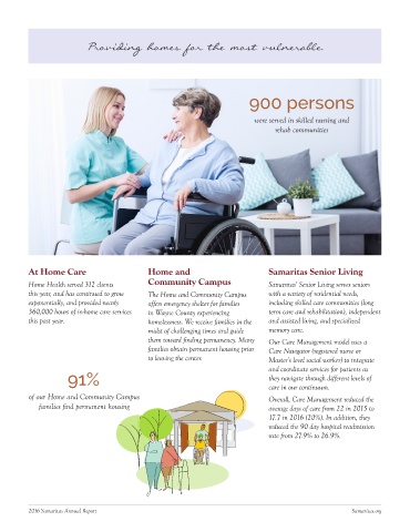 Home Health served 312 clients Community Campus Samaritas’ Senior Living serves seniors