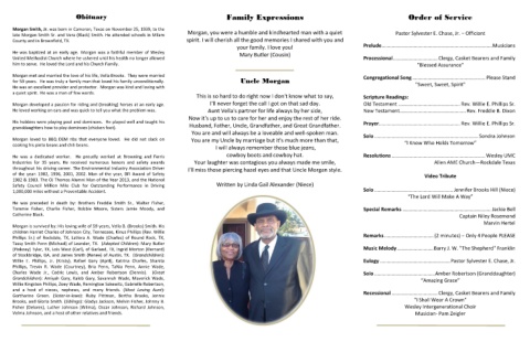 late Morgan Smith Sr. and Vera (Black) Smith. He attended schools in Milam Morgan, you were a humble and kindhearted man with a quiet Pastor Sylvester E. Chase, Jr. − Officiant