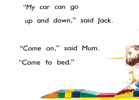 "My car can go up and down," said Jack. "Come on," said Mum. "Come to bed."