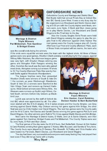 game against Tom Gardiner, Bridget Evans and Pat Mildenhall. The County Triples were won