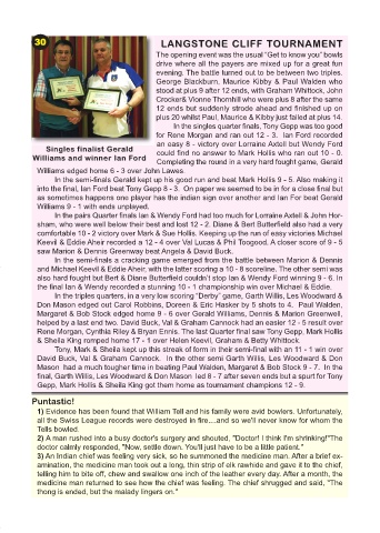 Mason had a much tougher time in beating Paul Walden, Margaret & Bob Stock 9 - 7. In the