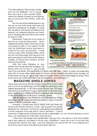 about bowls. As long as I get enough news and views I will try to keep the magazine going. What