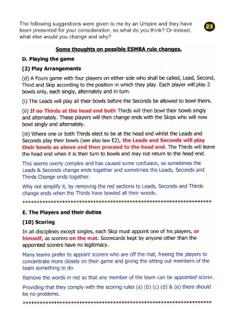 Page 23:Layout 1 15-Oct-17 3:27 PM Page 1 The following suggestions were given to me by an Umpire and they have 23 been presented for your consideration, so what do you think? Or indeed, what else would you change and why?