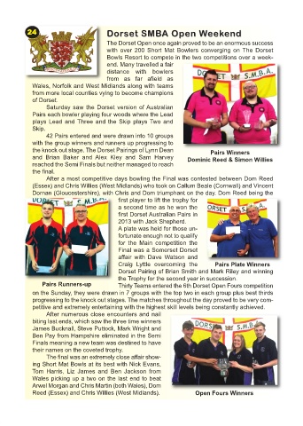Pairs Runners-up Thirty Teams entered the 6th Dorset Open Fours competition