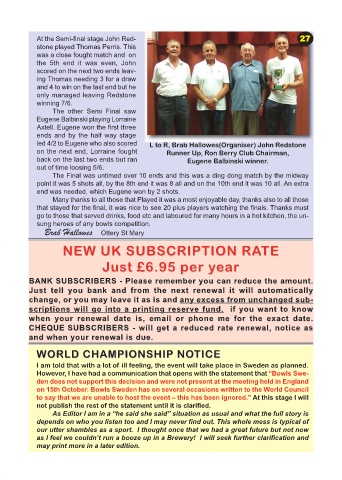 led 4/2 to Eugene who also scored L to R, Brab Hallowes(Organiser) John Redstone
