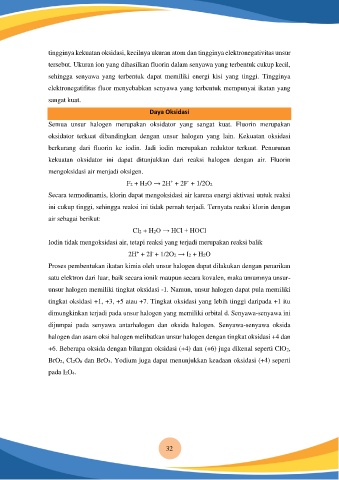 oksidator terkuat dibandingkan dengan unsur halogen yang lain. Kekuatan oksidasi