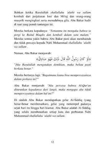 Di sinilah Abu Bakar mendapatkan gelar Al-Siddiq (yang