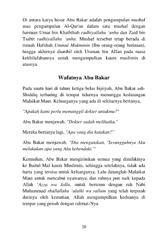 Di antara karya besar Abu Bakar adalah pengumpulan mushaf