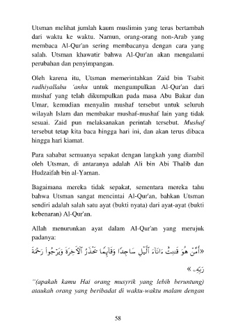 salah.  Utsman  khawatir  bahwa  Al-Qur'an  akan  mengalami