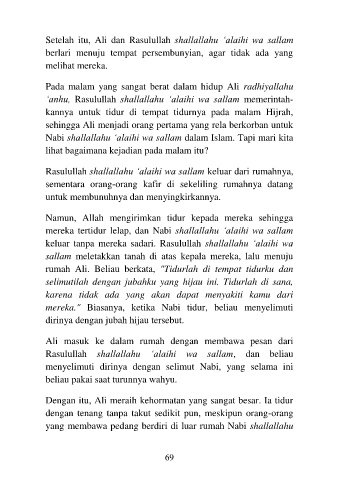 rumah Ali. Beliau berkata, "Tidurlah di tempat tidurku dan