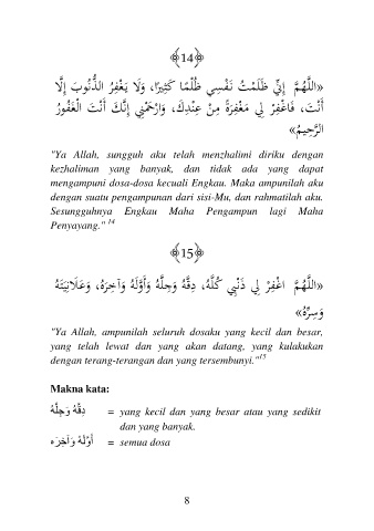 "Ya Allah, ampunilah seluruh dosaku yang kecil dan besar,