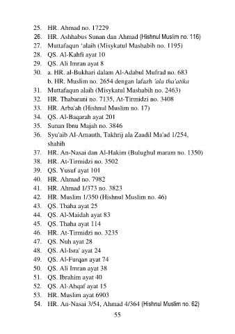 54. HR. An-Nasai 3/54, Ahmad 4/364 (Hishnul Muslim no. 62)