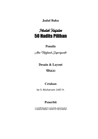 Mudah Hafalan 50 Hadits Pilihan SERI LITERASI-1 Judul Buku Mudah Hafalan 50 Hadits Pilihan Penulis Desain & Layout Cetakan ke-5: Muharram 1447 H. Penerbit ii