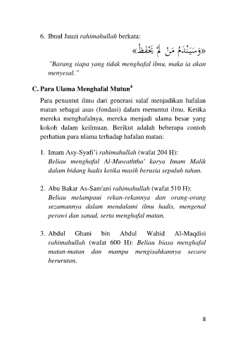 rahimahullah (wafat 600 H): Beliau biasa menghafal