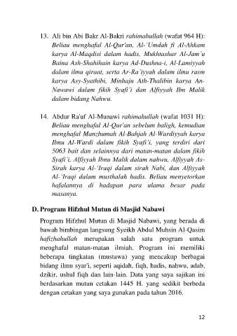 13.  Ali bin Abi Bakr Al-Bakri rahimahullah (wafat 964 H):