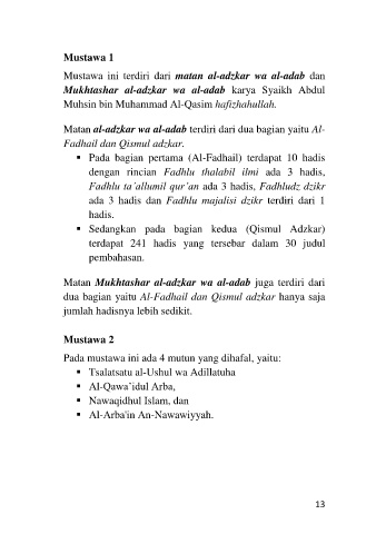 Mustawa  ini  terdiri  dari  matan  al-adzkar  wa  al-adab  dan