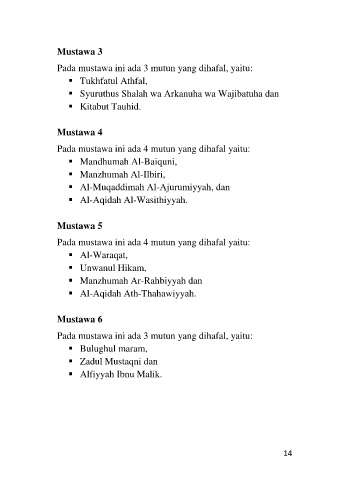 Pada mustawa ini ada 3 mutun yang dihafal, yaitu: