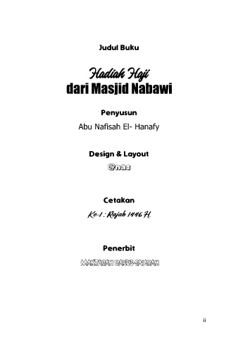 Judul Buku Hadiah Haji dari Masjid Nabawi Penyusun Abu Nafisah El- Hanafy Design & Layout Cetakan Penerbit ii