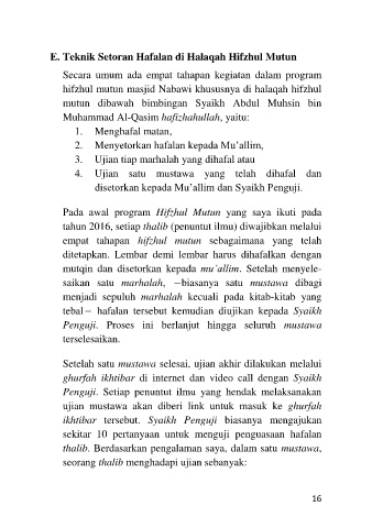E. Teknik Setoran Hafalan di Halaqah Hifzhul Mutun