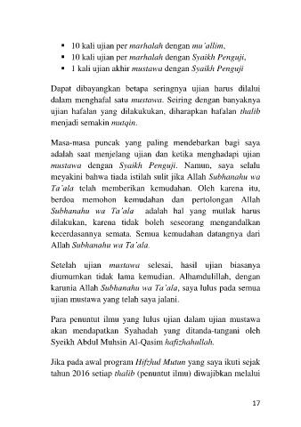 10 kali ujian per marhalah dengan Syaikh Penguji,