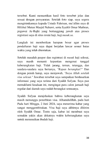 Syaikh Sufyan menjelaskan bahwa keberangkatan saya