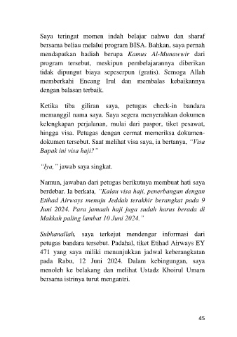 berdebar. Ia berkata, “Kalau visa haji, penerbangan dengan