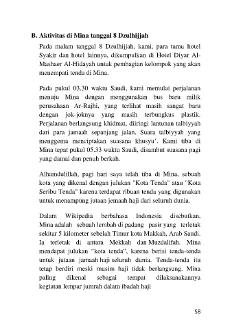 B. Aktivitas di Mina tanggal 8 Dzulhijjah
