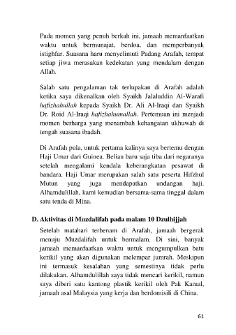 D. Aktivitas di Muzdalifah pada malam 10 Dzulhijjah
