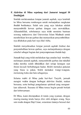 F. Aktivitas di Mina sepulang dari Jamarat tanggal 10