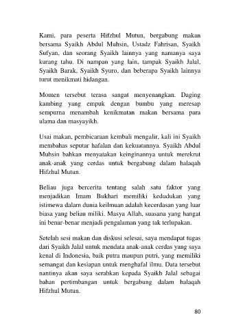 Usai makan, pembicaraan kembali mengalir, kali ini Syaikh