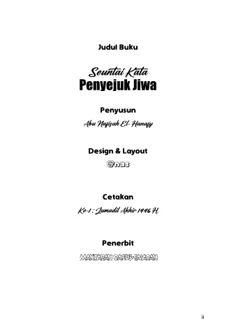 Judul Buku Penyejuk Jiwa Penyusun Design & Layout Cetakan Penerbit ii