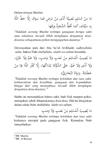 "Tidaklah seorang Muslim tertimpa gangguan berupa sakit