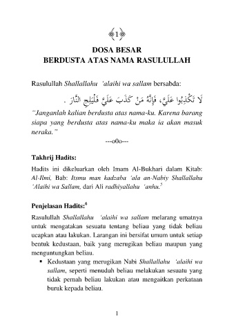siapa yang berdusta atas nama-ku maka ia akan masuk