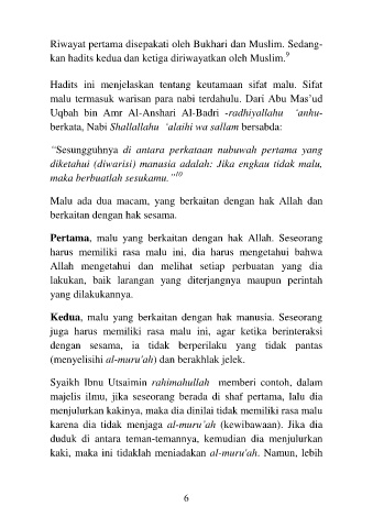 Kedua, malu yang berkaitan dengan hak manusia. Seseorang
