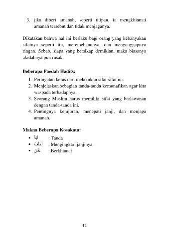 3.  jika  diberi  amanah,  seperti  titipan,  ia  mengkhianati