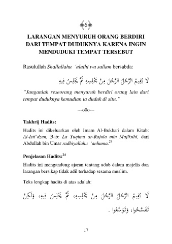 Al-Isti‟dzan,  Bab:  La  Yuqimu  ar-Rajula  min  Majlisihi,  dari