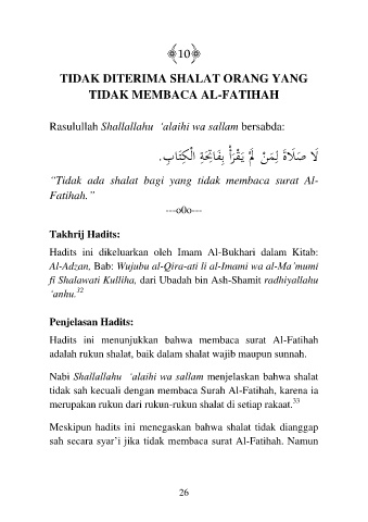 “Tidak ada shalat bagi yang tidak membaca surat Al-