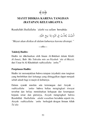 “Mayat akan disiksa di dalam kuburnya karena diratapi.”