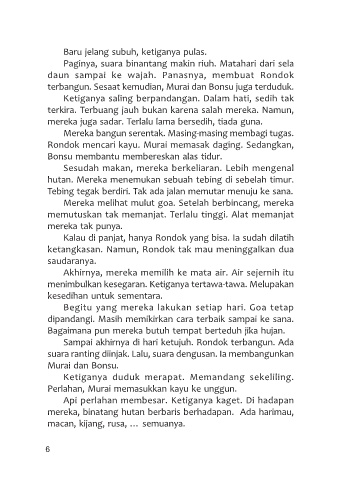 Rondok mencari kayu. Murai memasak daging. Sedangkan,