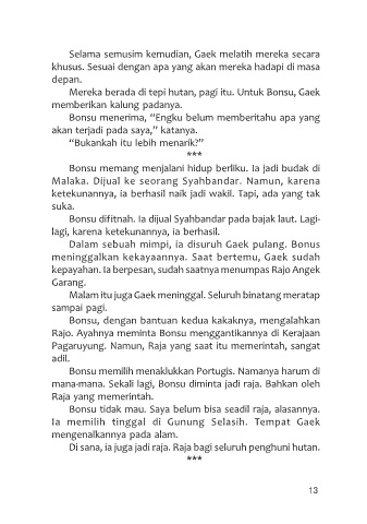 mana-mana. Sekali lagi, Bonsu diminta jadi raja. Bahkan oleh