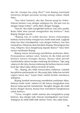 berburu karena larangan ibunya. Ibunya tidak pernah