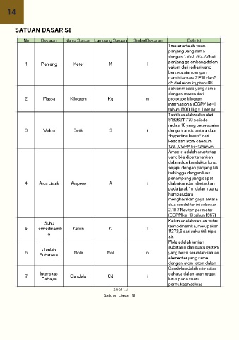 14 SATUAN DASAR SI Tabel 1.3 Satuan dasar SI
