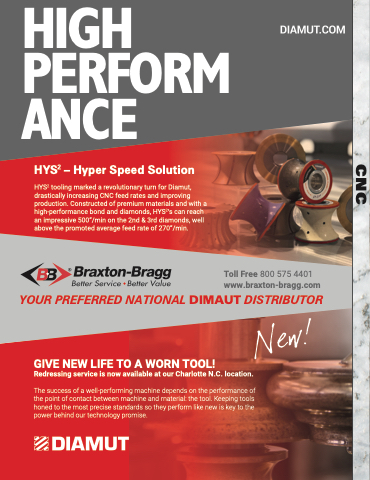 HYS2 tooling marked a revolutionary turn for Diamut, drastically increasing CNC feed rates and improving production. Constructed of premium materials and with a high-performance bond and diamonds, HYS2’s can reach an impressive 500”/min on the 2nd & 3rd diamonds, well above the promoted average feed rate of 270”/min.