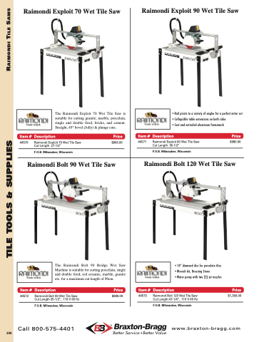 44570 Raimondi Exploit 70 Wet Tile Saw Cut Length 27-1/2”